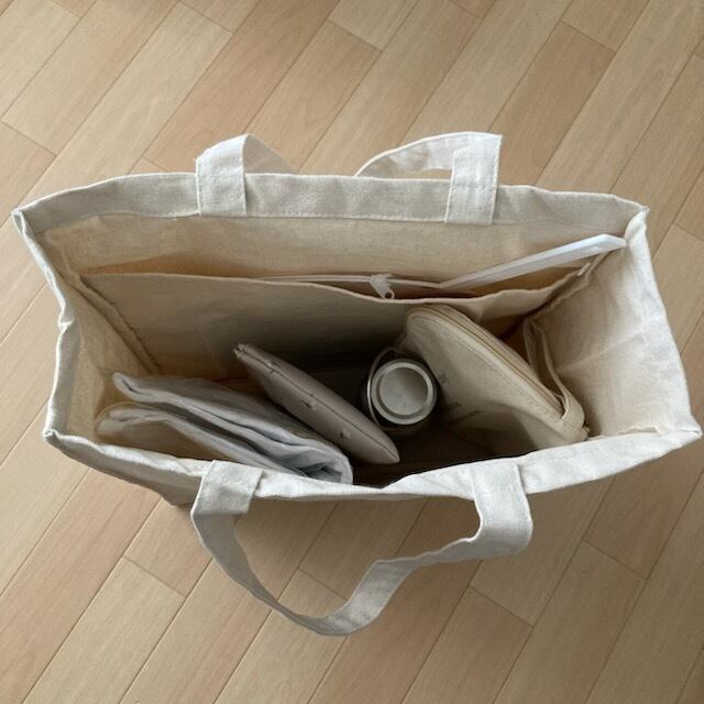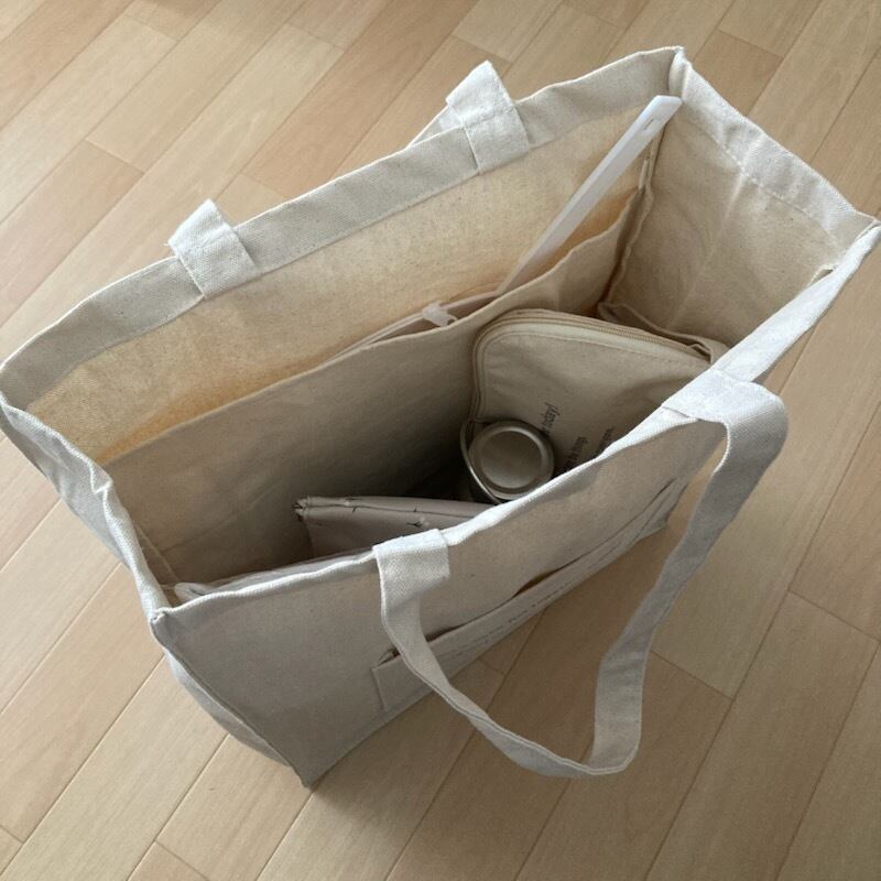 綿100%で作られたナチュラルカラーのバッグは素材に天然のままの綿花を使用しているため、藁や草木のようなにおいがあったり、熱を加える加工により素材に含まれる油分の焦げや生産の際に再生紙を使用したカートンの匂いが移り、天候や湿度などによって商品に匂いが発生したりする場合があります。匂いは時間経過とともに軽減されますが、日陰の風通しのよい場所で数日間保管していただくことにより軽減が早まります。