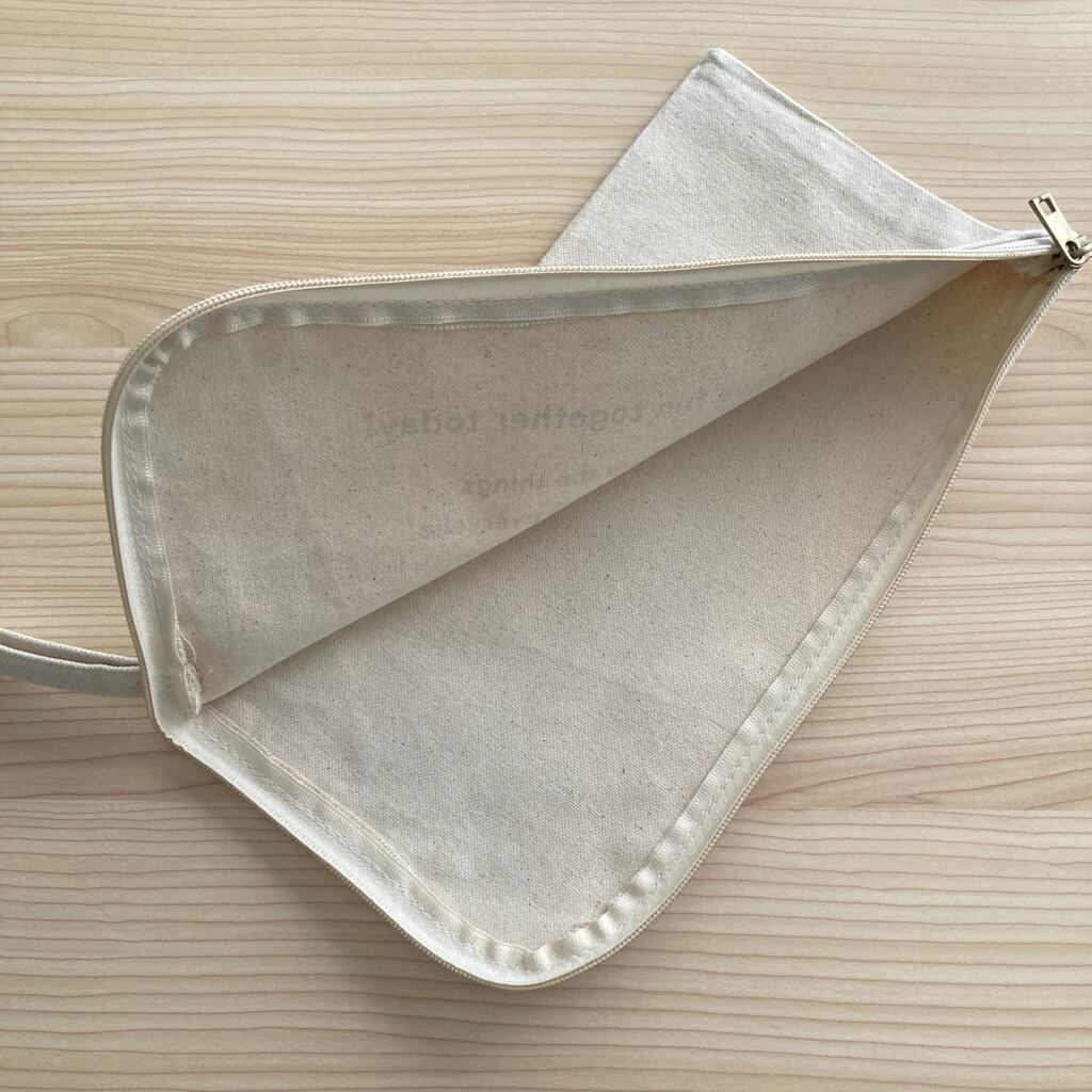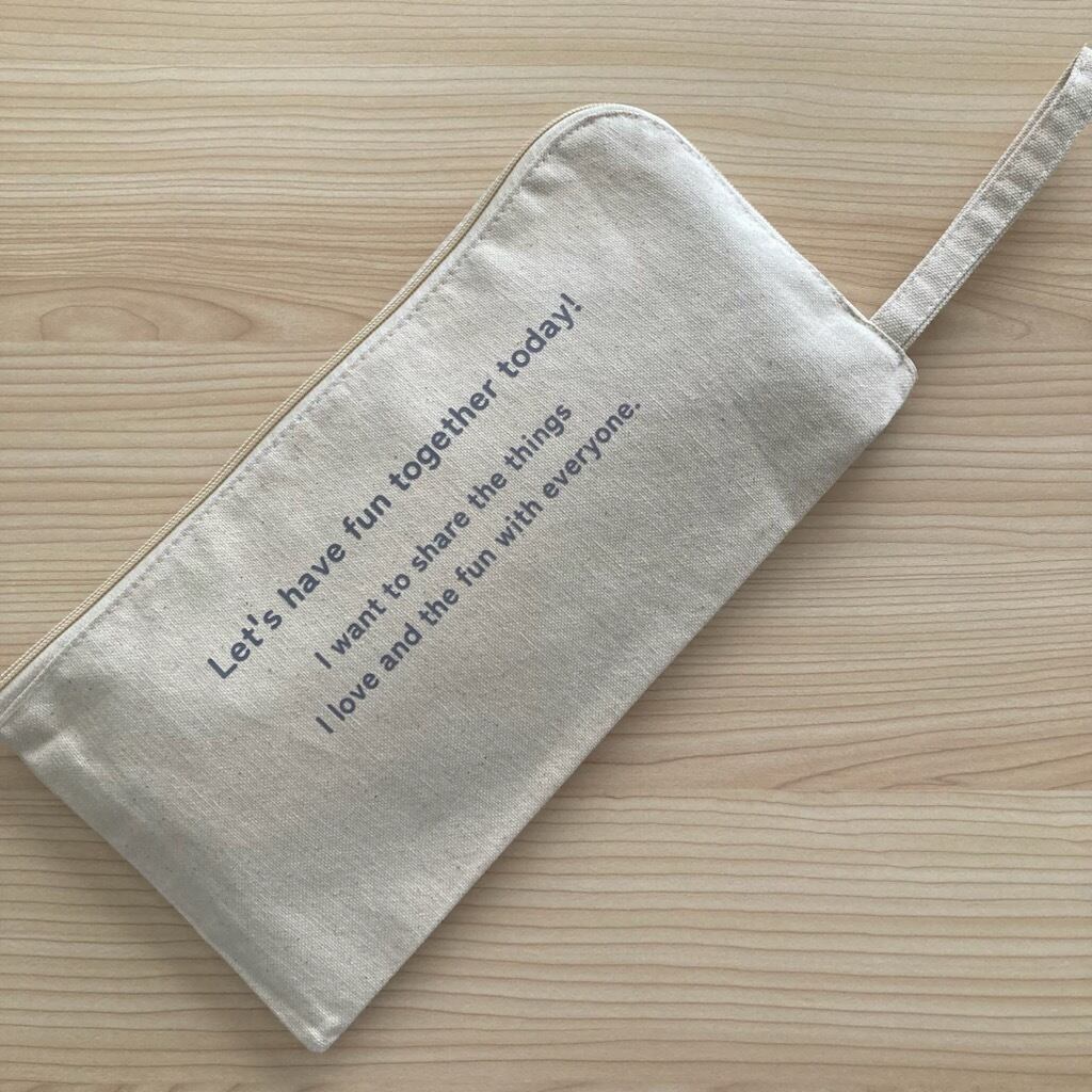 ママとお子様、女の子達のライブ参戦などに活躍する10ozと厚みのあるコットン生地を使用したペンライトケースです。メッセージのみのシンプルなデザインでファスナー部分は物の出し入れがしやすいL字ファスナーで持ち運びに便利なストラップも付いているので機能性も抜群です。