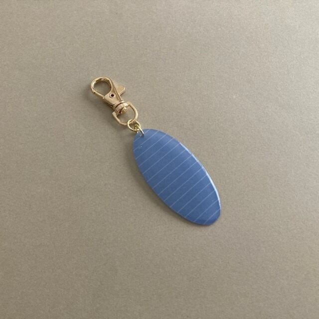 ナチュラルな北欧デザインを意識したシンプルなライトブルーとホワイトラインのデザインは日常にも、特別なシーンでもポイントやアクセントになるキーリングです。軽くてつけやすいので季節を問わずご愛用いただけるアイテムです。ちょっとしたプレゼントにもオススメです。カラビナを使えばトートバッグなどの持ち手にもつけられます。